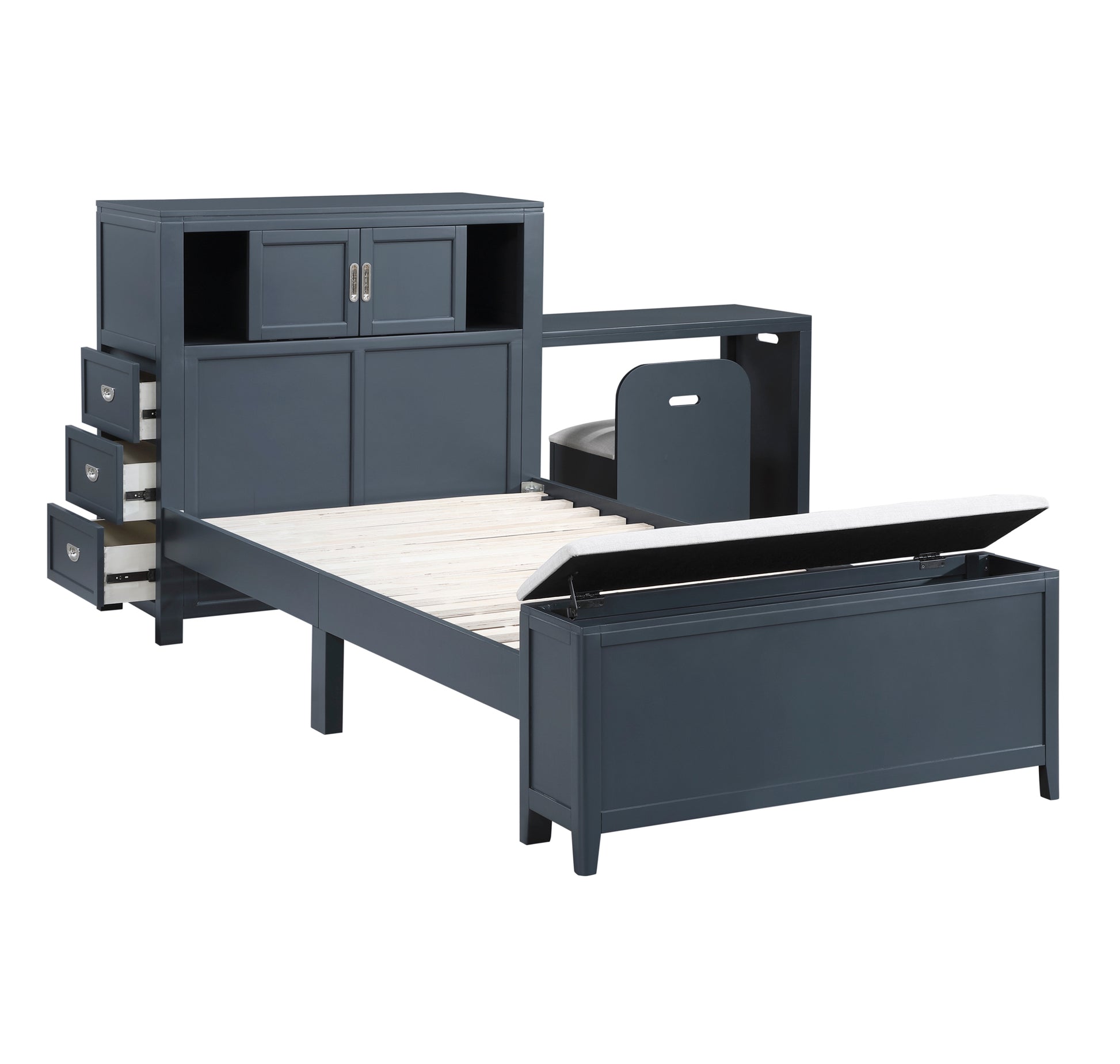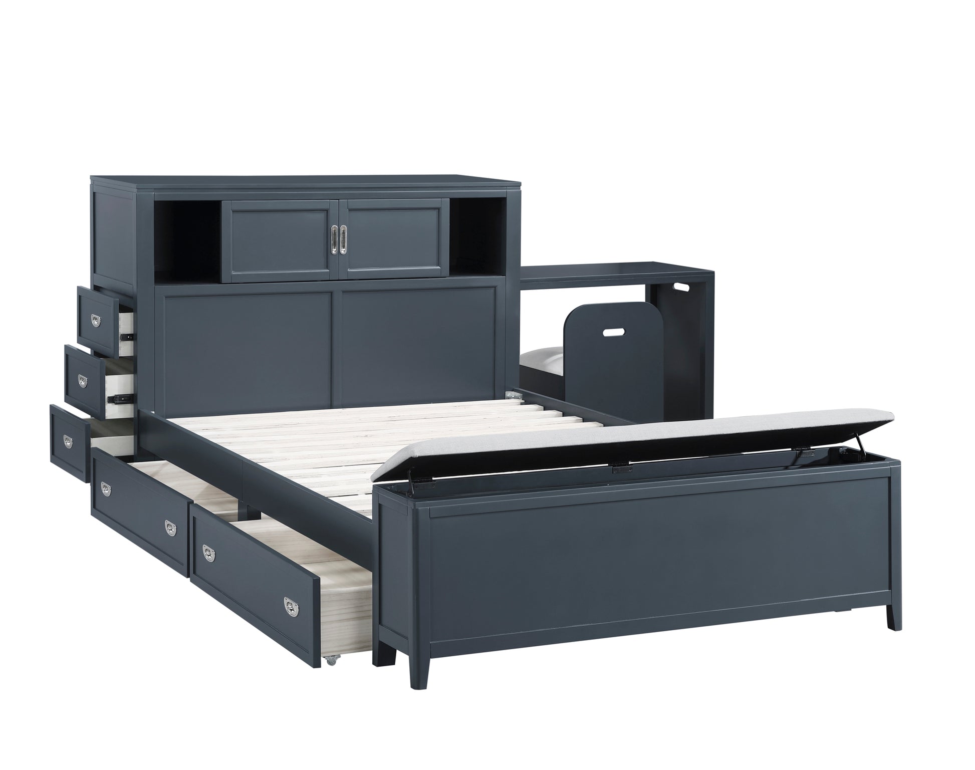 B2024BUBC Twin/Full Bookcase Platform Bed with Hidden Desk, Stool and Storage Bench .Limited Toronto Stocks