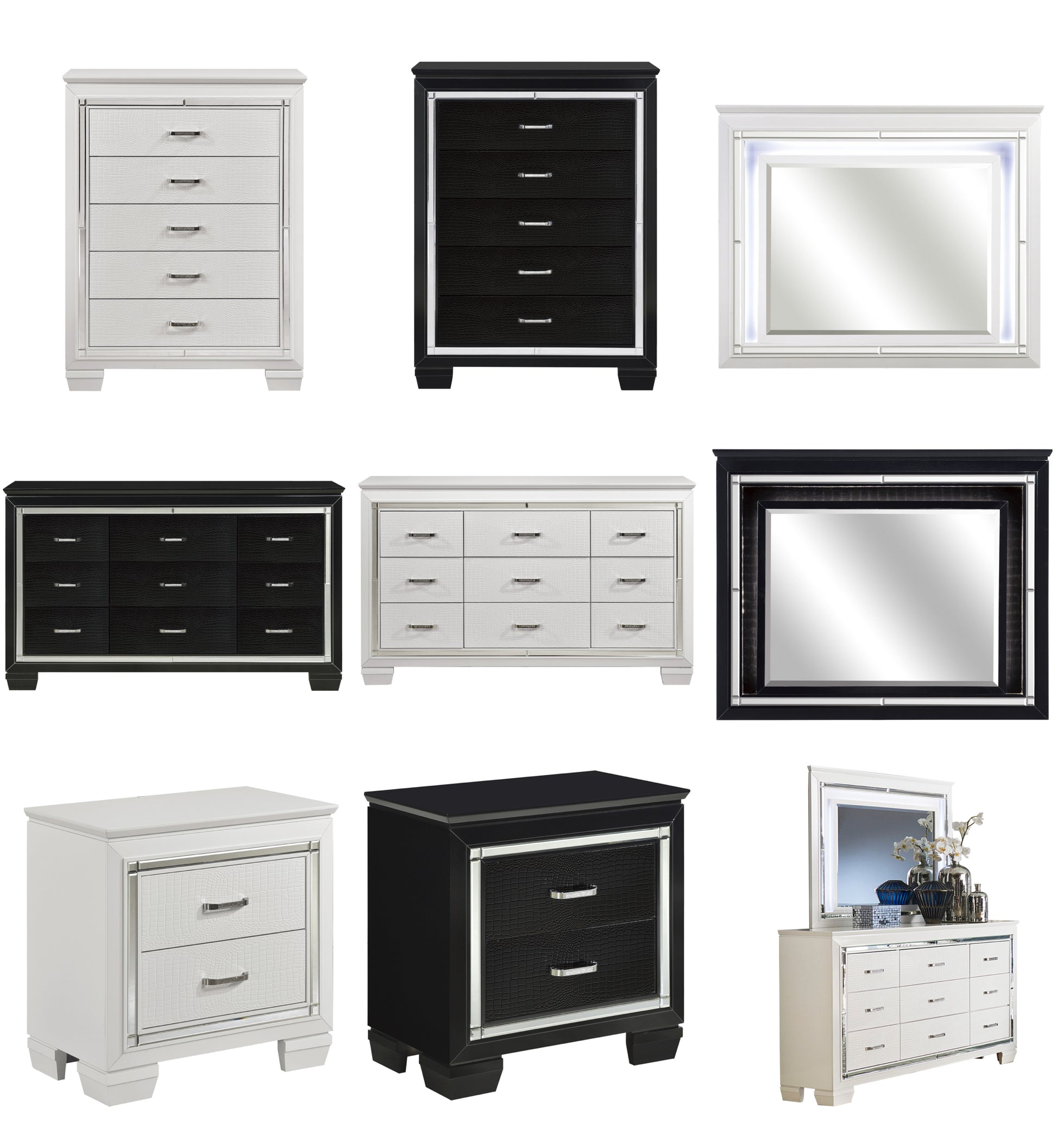 Classic Glamorous Black/White Night Tables/Chests/Dressers/Mirror 1916BK/W Limited Stocks Toronto