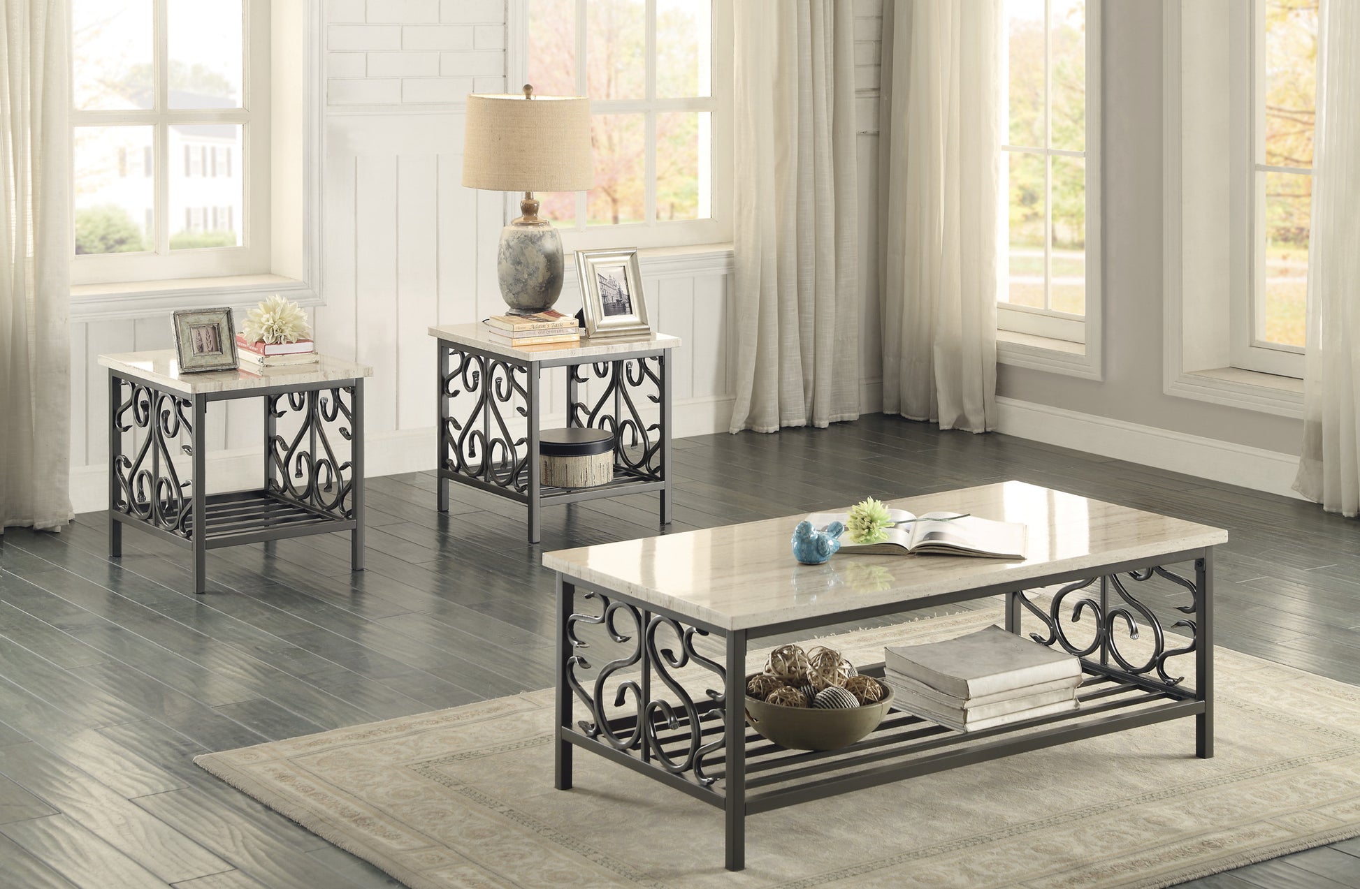 - Includes 1 coffee table and 2 end tables