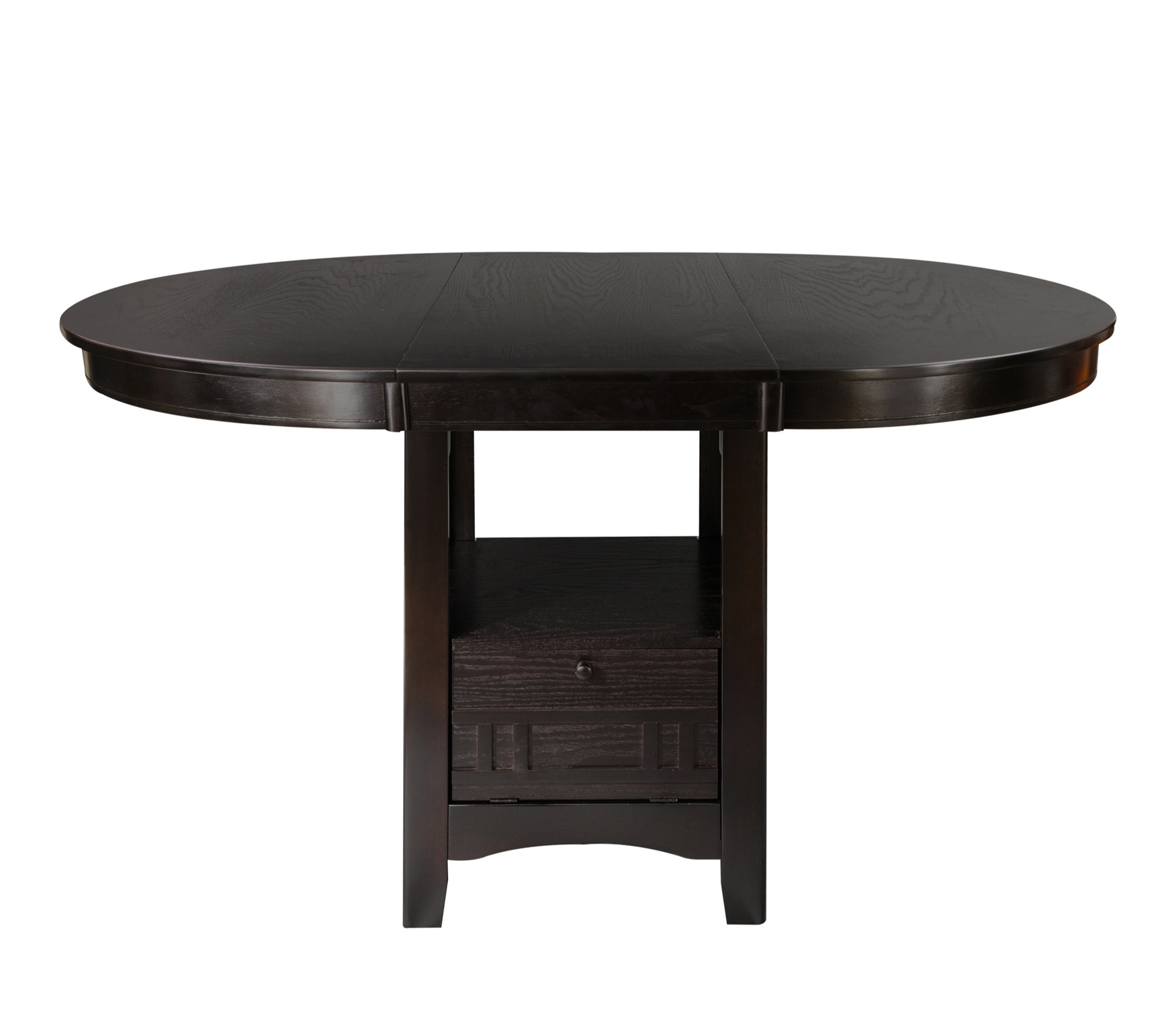 - Table extends by pulling both ends and dropping in leaf