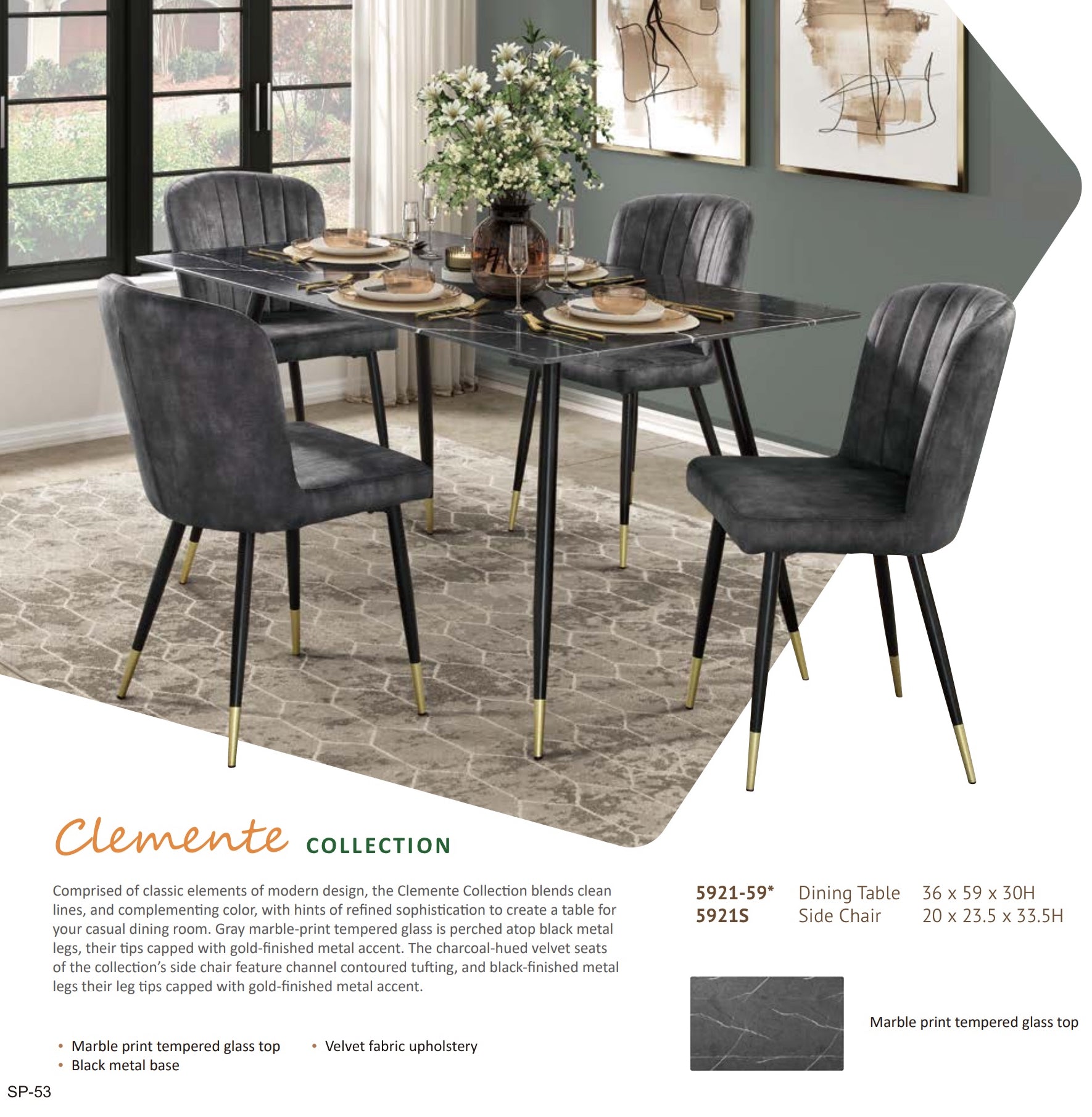 Model 5921 Marble print tempered glass top Modern Dining Set California Stocks