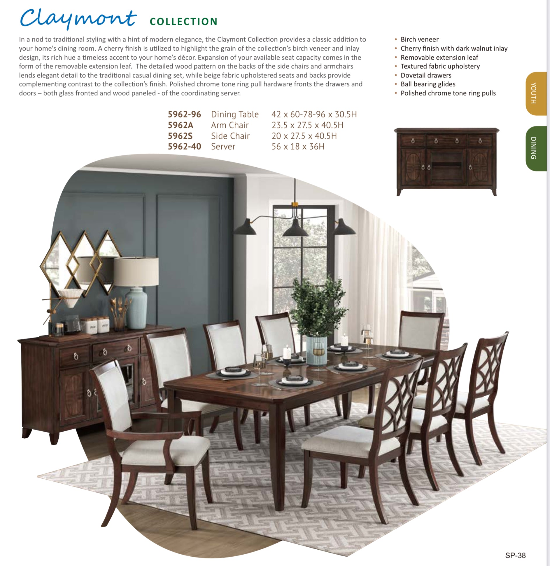 Model 5962 Dining Set Toronto/California Stocks