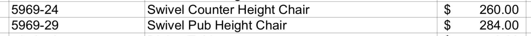 Model 5969-24/29 Swivel Counter/Pub Height Chairs California Stocks