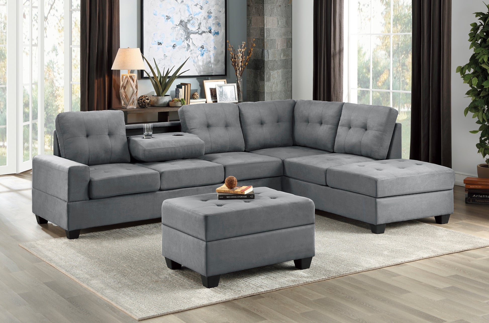 Model 9507DGY Reversible Sectional with Drop-Down Cup Holders and Storage Ottoman Toronto Stocks