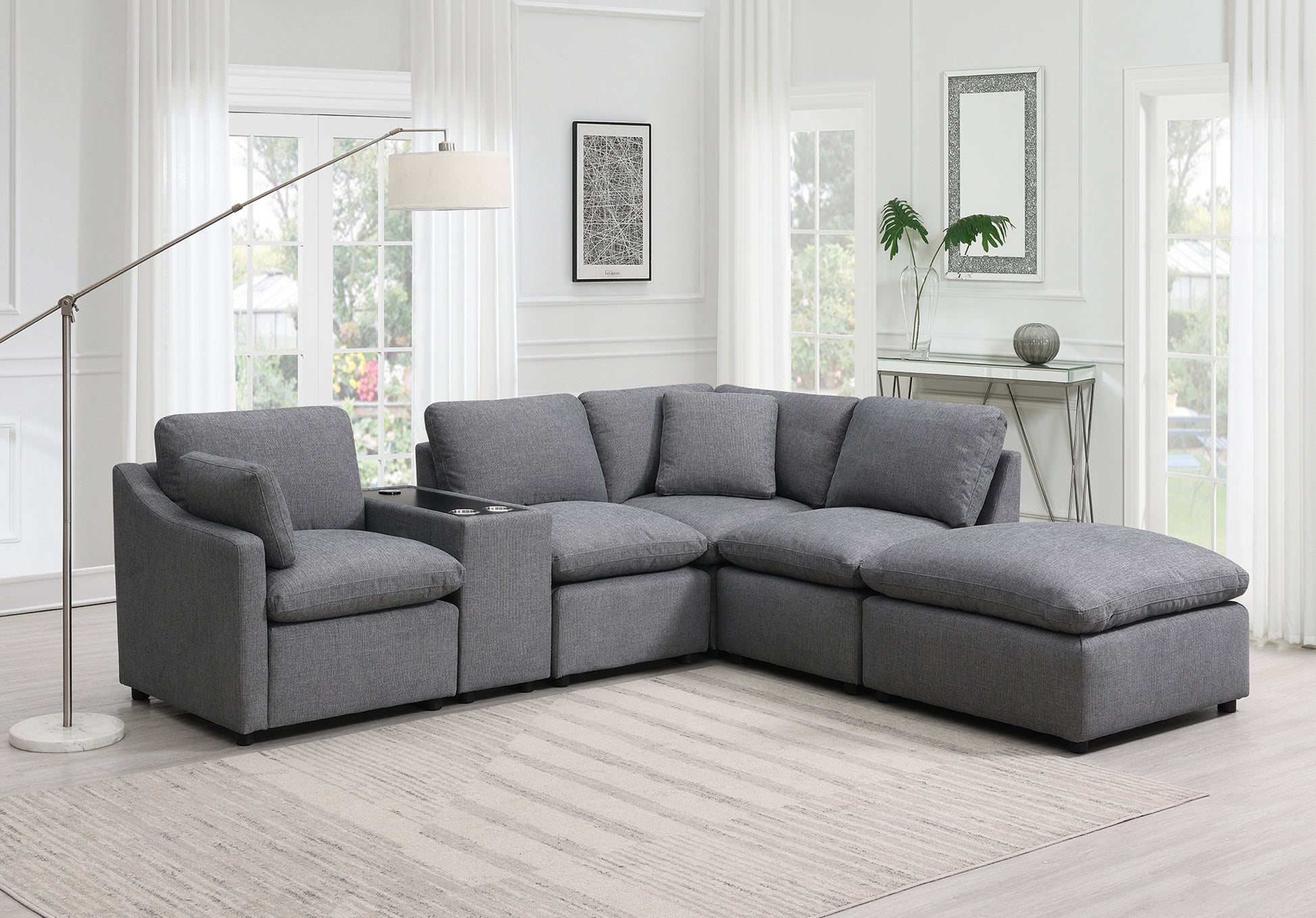 Model 99076GYSSO6L 6-Piece Modular Sectional with Left Side Arm Chair, Console with Wireless Charger, & Left Side Ottoman Chaise . Toronto stocks (Copy)