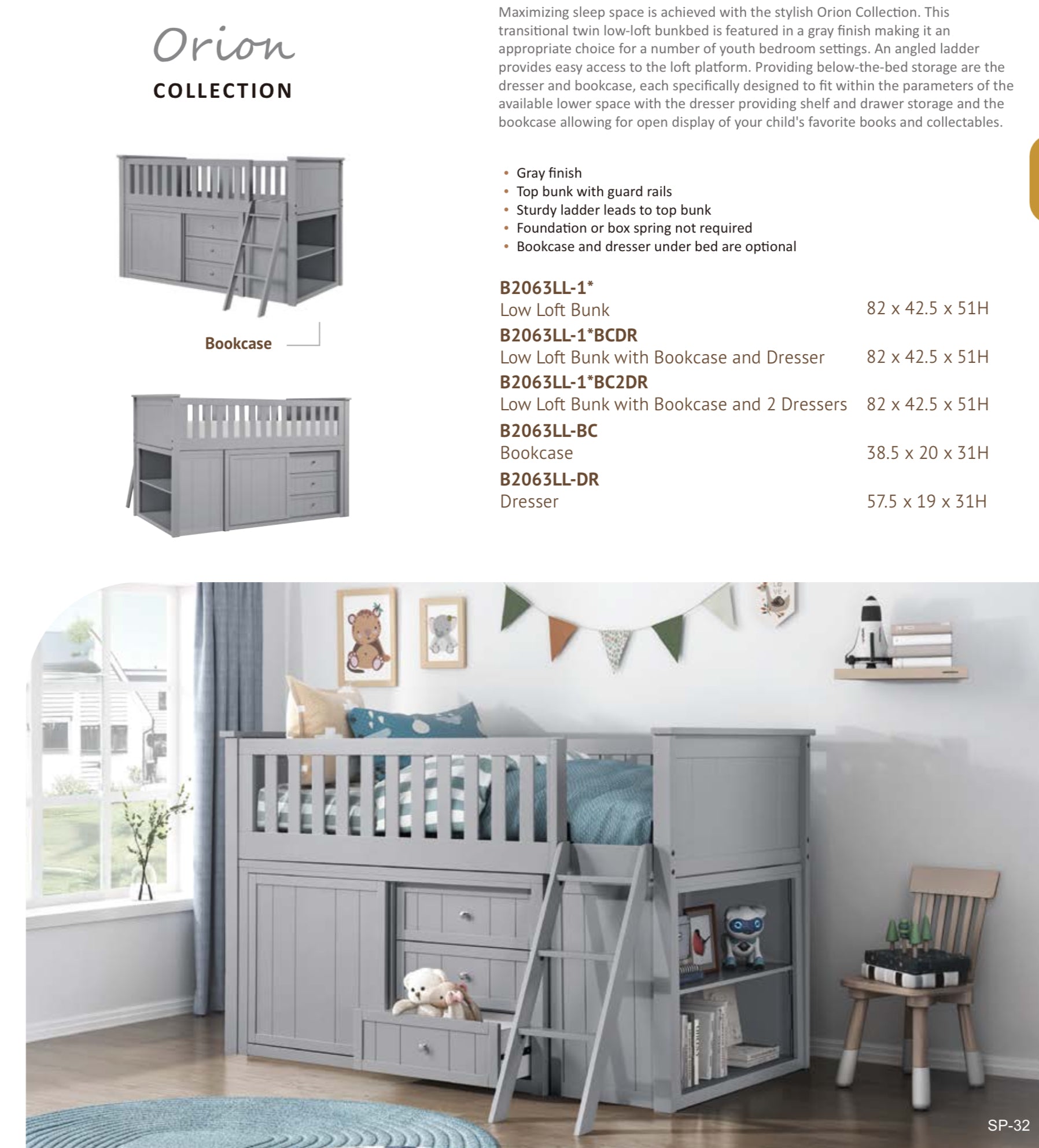 Model B2063LL Low Loft Bunk with Dresser California Stocks