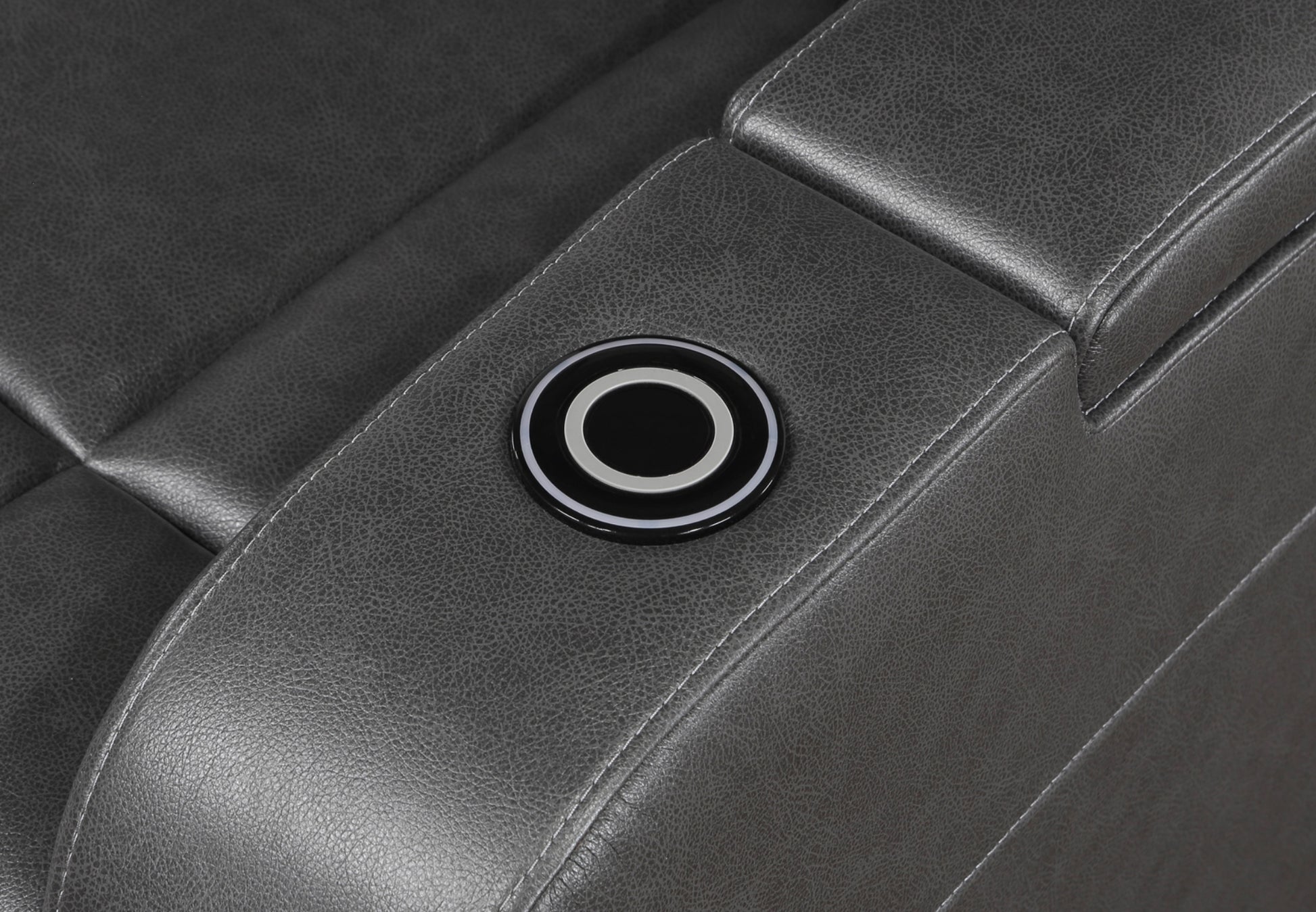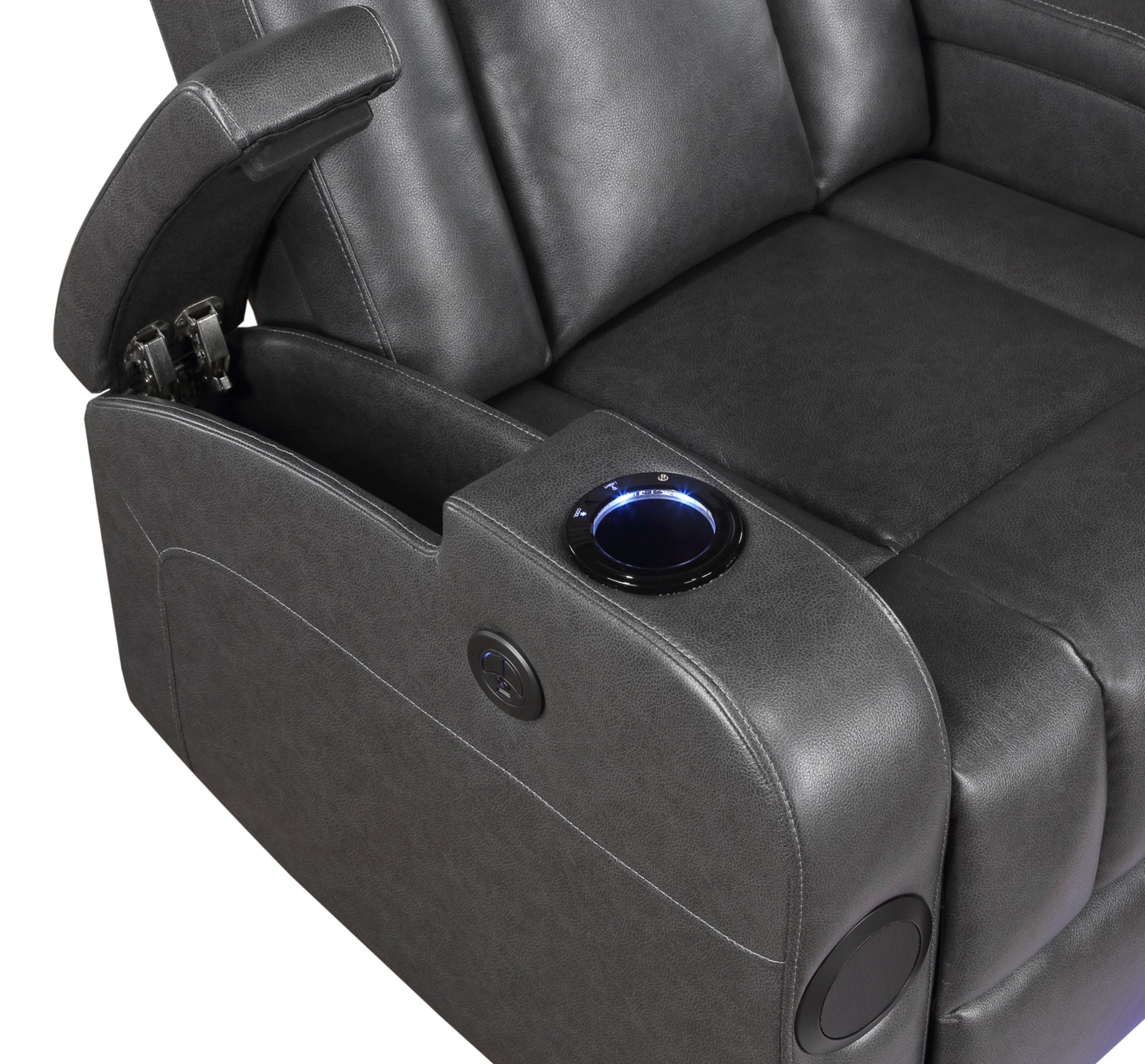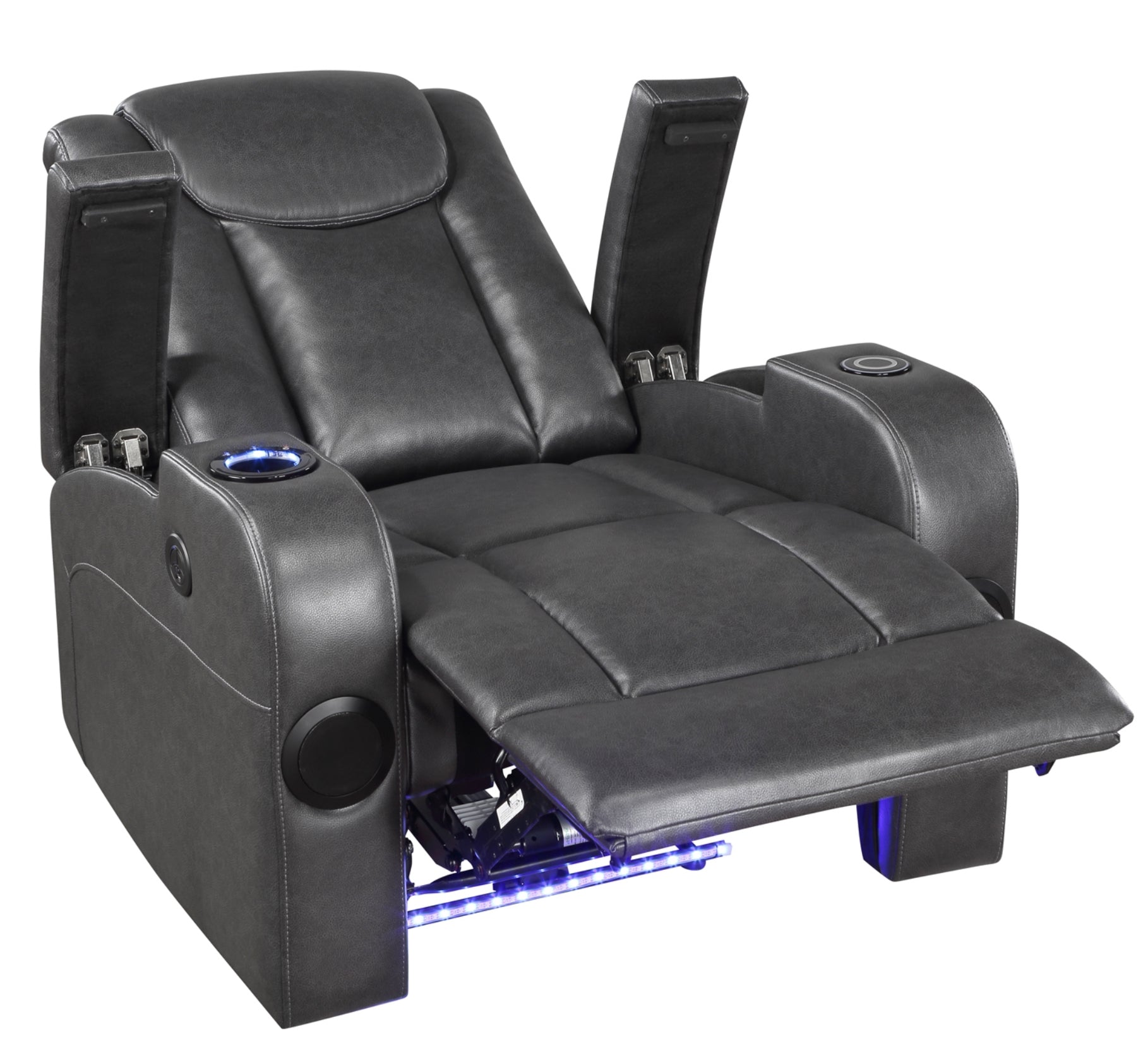 Model 98522GRY-1PW Power Reclining Chair with Wireless Charger, Cooling Cup-Holder, Storage Arms, Speakers, LED Light & USB Port. Toronto Stocks