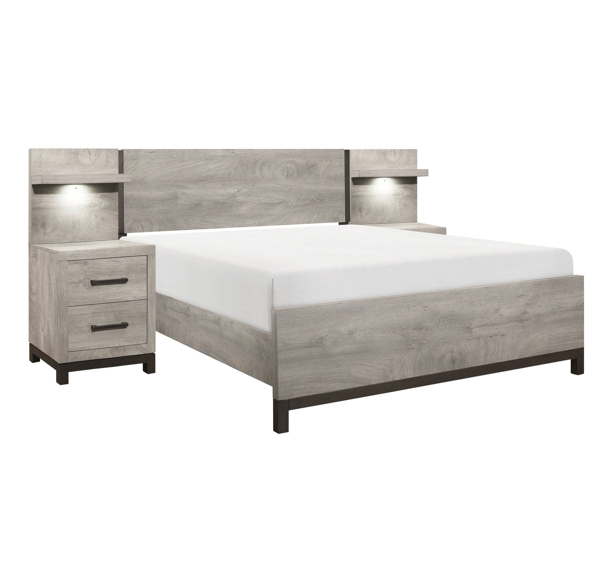 King Bed with 2 Night Tables and panels 119 x 85 x 43.5H