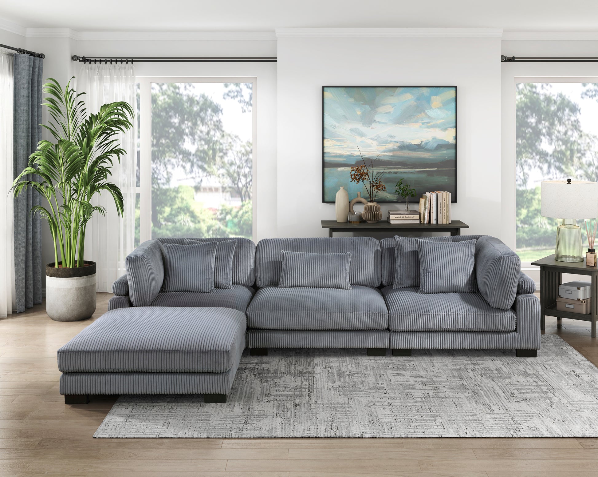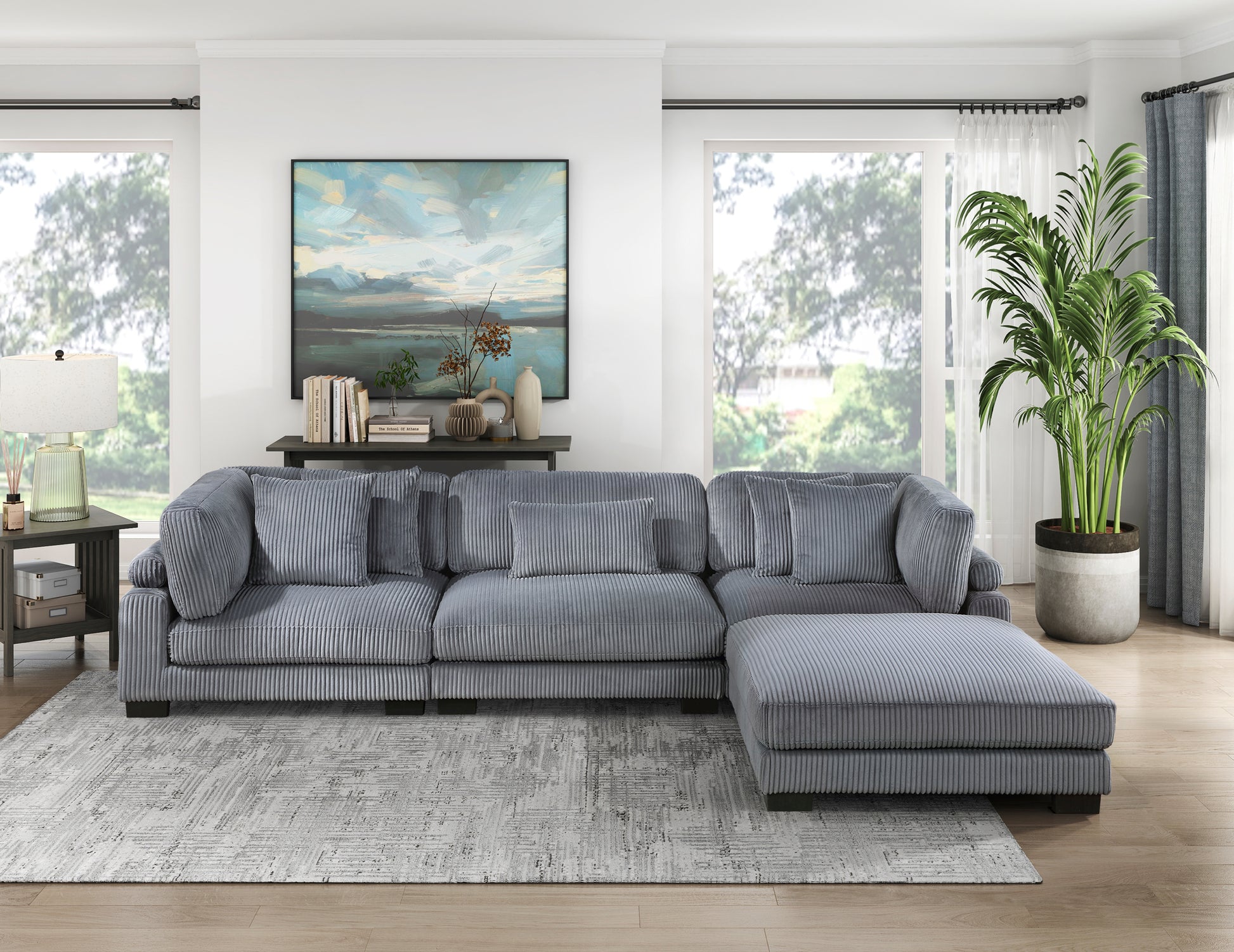 Modular Corduroy fabric Sectional Sofa Model 8555GY 2CR+1AC+ Ottoman Toronto Stocks